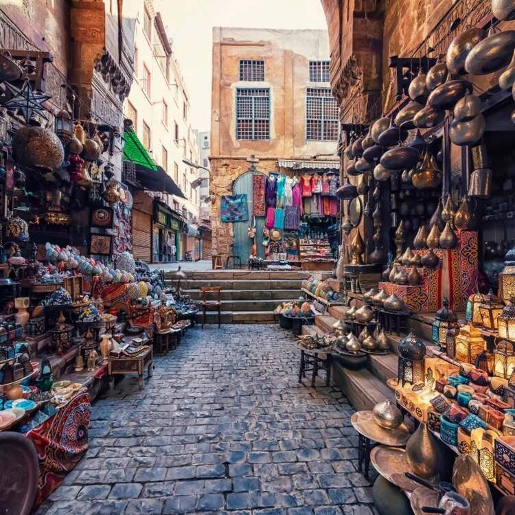 Kairo lebt von Kontrasten: elegante Boulevards treffen auf geschäftige Marktstraßen. Im Khan el-Khalili mischen sich Gewürzduft, Handwerk und Teehauskultur. In Zamalek wirkt der Tag ruhiger, mit Blick auf den Nil.
